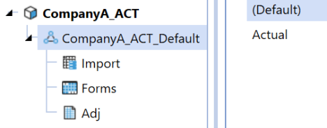 After creating the Cube Root for CompanyA_ACT, the Scenario Types available for the ACT Workflow Profiles would look like this: