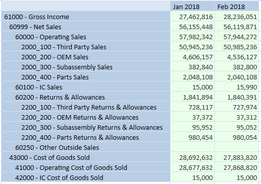 A#[Income Statement].Descendants.Find(64000).Children will return all of the descendants of the Income Statement as a flat list, but will find account 64000 (i.e. Earnings Before Taxes in this example) and then indent and present that account’s children.