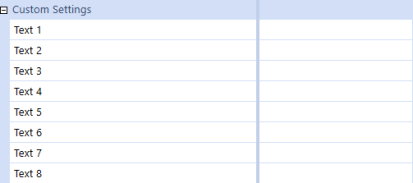 Custom Settings, Text1...Text 8, enable you to use custom attributes for business rules, member filters, or transformation rules. The value can be changed in the tag over time as the business changes, or by scenario type.