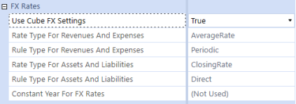If False is selected, Rate and Rule Type for Revenues And Expenses, Rate and Rule Type for Assets And Liabilities, and Constant Year For FX Rates become accessible.