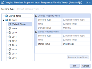 In the Varying Member Property window, from the pane on the left, choose the year.