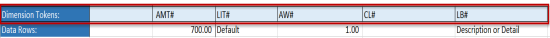 After the Dimension Tokens are configured, enter the data in the corresponding column. The Dimensions can be in any order.