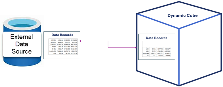 This data binding lets you share data from any source through workspace assemblies. You can view data in cube views and filter which members you want to share.