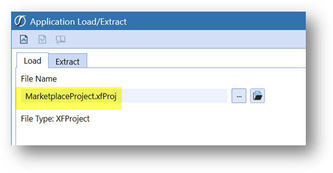 The .xfProj file is placed in a local folder, such as the user’s desktop. The defined folderpath folders will be generated here as the target location for application exports and loads. There are two file extract options available on the Windows App.