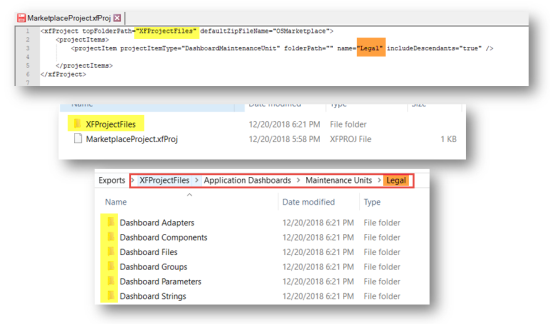 .zip: The export option will collect all the objects defined in the .xfProj file as a Zip file to the location of the .xfproj file.