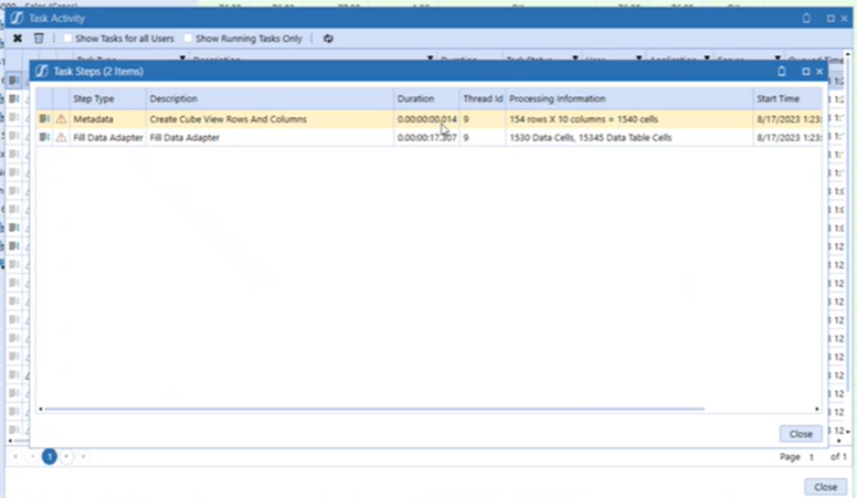 In Task Activity, a User or Administrator can track cube view progress and cancel a long-running cube view instead of resetting IIS.