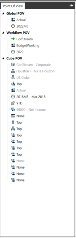 TIP: Save a commonly used POV by right clicking on the Cube POV and selecting Save Cube POV to Favorites. This saves the POV under Application|Documents|Users >|(User Name)|Favorites allowing it to be used on any Cube View, grid, or Dashboard.