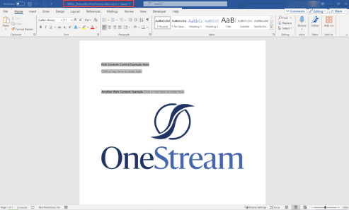 TIP: If the Document Variable content is shaded after processing and opening in Microsoft Word, update your settings in File > Options > Advanced > Field shading: Never.
