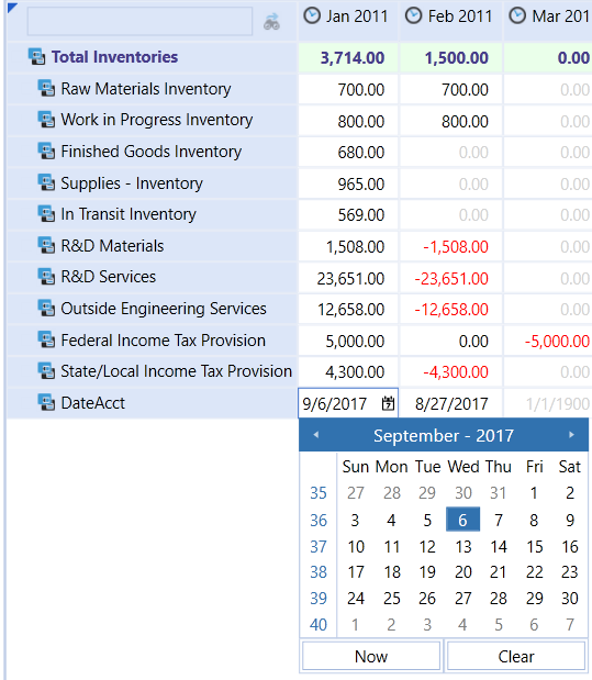 Date: Enables a calendar in the cube view cell and allows you to select a specific date in the data cell.