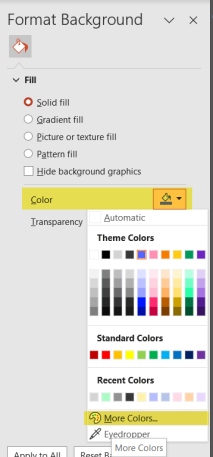 Next to Color, select the Fill Color (paint icon) and click More Colors.