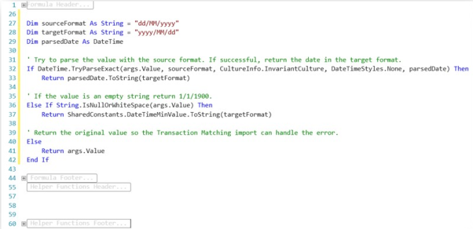 This example is provided in case the source data cannot be altered. This will convert the date into syntax suitable for the transaction matching conversion: