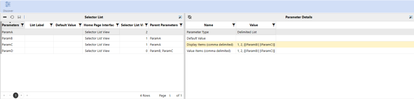 The default value of a parameter is the initial view for the parameter filter. When the default value of a parameter is modified, the next time the parameter is viewed, it will use the last value selected and not the default value that was initially displayed. You can select a different default value than what is listed in the Parameter Details by using the Default Value column within the Selector List table.