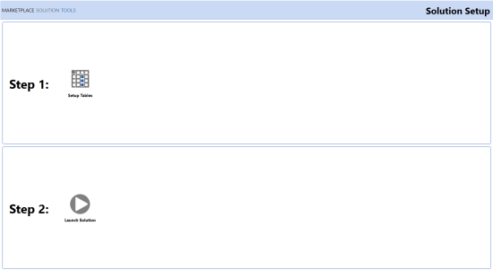 After selecting Marketplace Solutions Tools from the Dashboard, you will be presented with the Solution Setup screen.