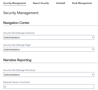 Security Role [Manage Narrative]: Determines which security group can manage narrative books
