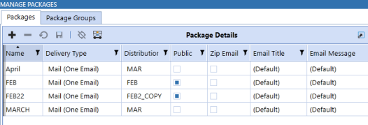 Distribution: Name of the distribution list defining the recipients of the selected package.