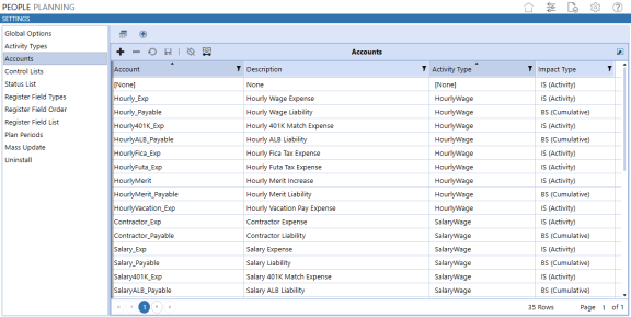 Impact Type: Drop-down list containing the impact types [IS (Activity), IS (Cumulative), BS (Activity), BS (Cumulative), Stat (Activity), Stat (Cumulative)]. Impact Types have a direct impact on how Plan Data is calculated over time.