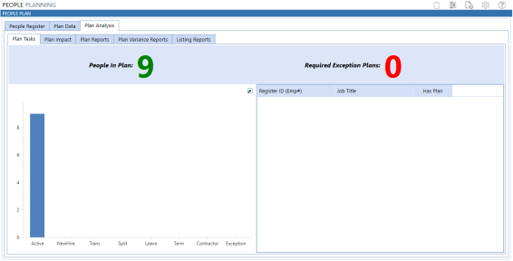 The People Plan page contains the People Register, Plan Data, and Plan Analysis tabs. |