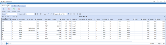 The People Register is where register items (for example, Employees) are imported, entered, and maintained. This concept of a Register carries over into the other Planning solutions, though the columns displayed, and data gathered as an input to the Plan Data will vary.
