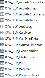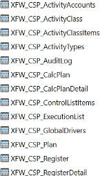 NOTE: These tables are the tables that are created in the OneStream application database for the installed Planning solutions.