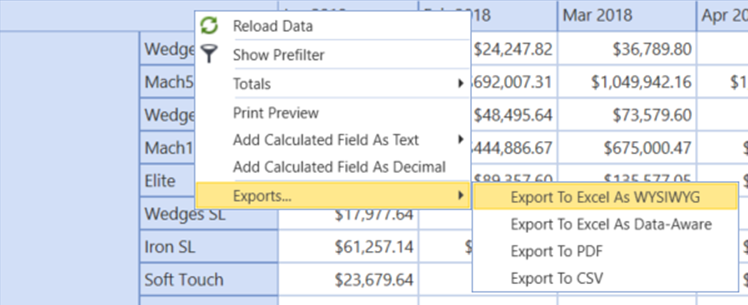 Export To Excel As WYSIWYG. Excel WYSIWYG provides a static presentation of the current Pivot Grid.