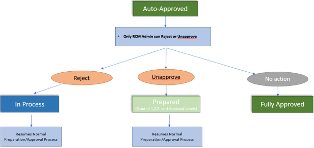 These diagrams show how auto-prepared and auto-approved reconciliations move between states.