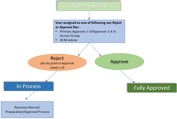 Prepare Only: If selected, the reconciliation is auto reconciled to the Prepared status (Auto Prepared). The reconciliation still requires approval. If not selected, the reconciliation is auto reconciled to the Fully Approved status (Auto Fully Approved). The reconciliation will not require any approvals.
