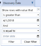 NOTE: The filter on this column can be used to find newly discovered Reconciliation Inventory Items by, for instance, setting the filter properties to be Is Greater Than and a date that is before Discovery is done for a given month, such as the first day.
