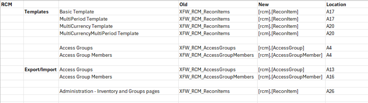 If you are using any of the Templates or Exports listed below from a prior release version, please update the file to reflect the new table names in the following areas: