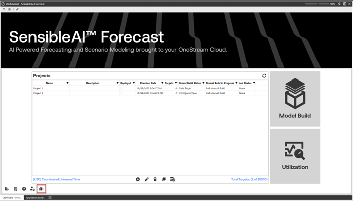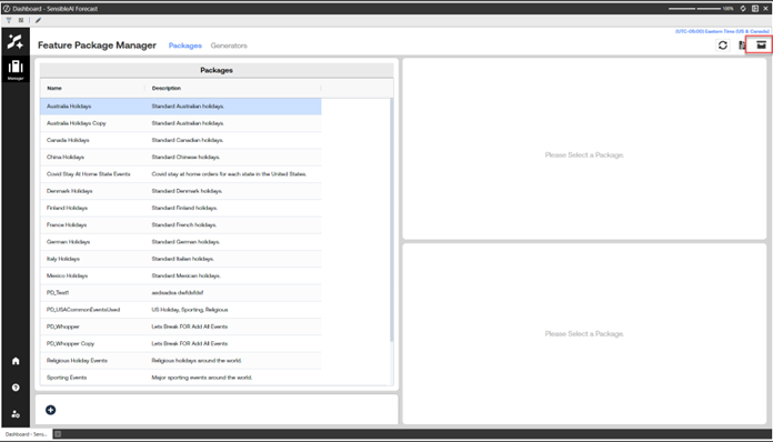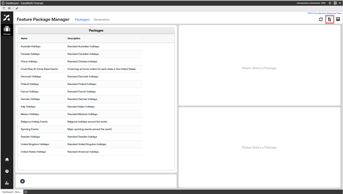 From the SensibleAI Forecast home page, select the Feature Package Manager briefcase icon.