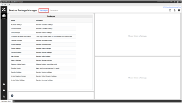When you upgrade releases of SensibleAI Forecast, you can re-import the predefined event packages. To do this you can navigate to Feature Package Manager.