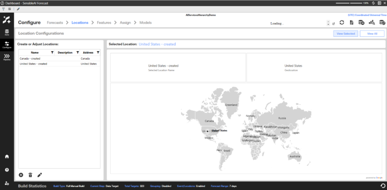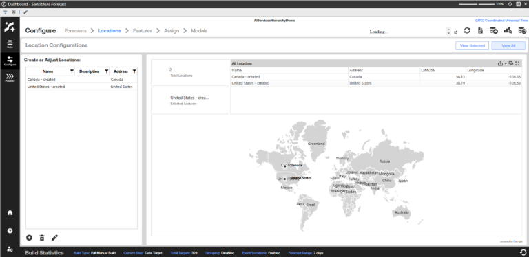 Once you have grouped source data using the Dataset page, you can use the Locations page to manage locations to be used in your target data sets. You can add, delete, or edit locations using this page.
