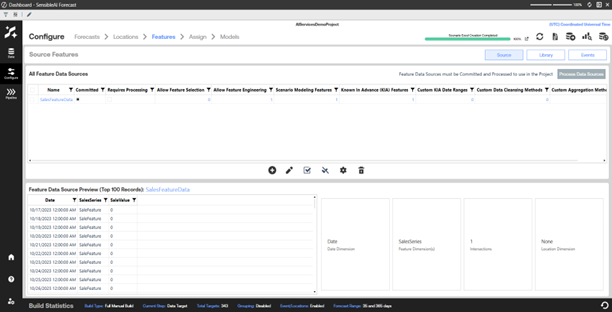 IMPORTANT: You should have detailed knowledge of your feature data sources and how the sourced data in the data columns match to dimensions used to store that data. See the SensibleAI Forecast Data Quality Guide for information on data planning for your project.
