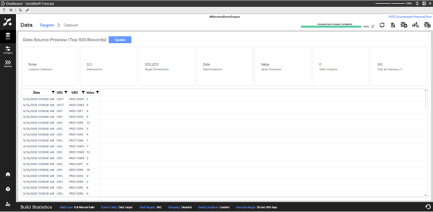 After configuring your source data in OneStream and creating your SensibleAI Forecast project, you can use the Targets page (Data > Targets) to configure your target source data to use in your model. This is a two-step process.