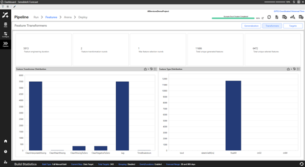Feature Transformer Distribution Chart: A bar chart showing how many features were created using each type of transformer.