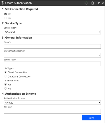 Use the Service Type drop-down menu to choose which service type you would like to use. Select either OData V2, which is the default, or OData V4. See Web API Services.