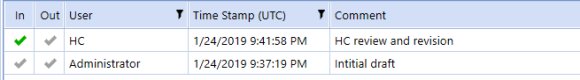 Provide an explanation of what changed in the Comment field. Both versions of the document display in the Document Management list.