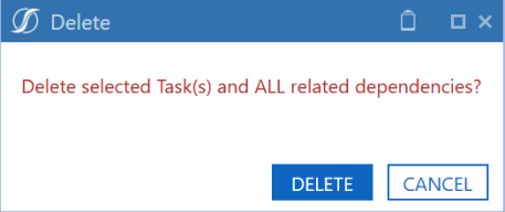 If you delete a task that has one or more dependencies, all dependencies will be deleted. When deleting a task that is a dependency of one or more other tasks, you will be prompted with the following message: