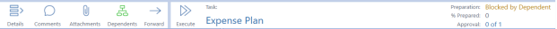 Icons in the Task Action menu bar display in green to indicate that the selected task includes items represented by the icon. For example, the task shown in the Task Action menu bar above (Detailed Capex Plan) includes dependents.