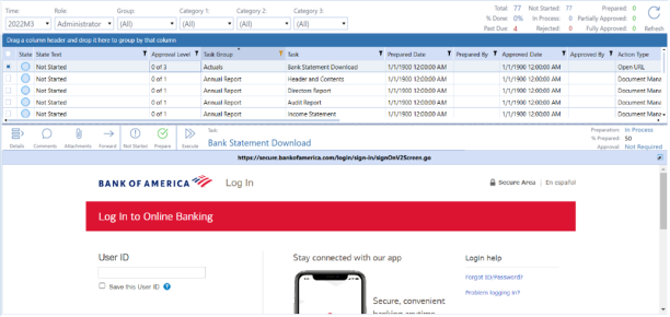 The OneStream dashboard displays in Task Manager tab when you click Execute, so you can easily switch between the dashboard tab and the tab containing the task’s details. Navigation and actions can be taken in the dashboard in Task Manager.