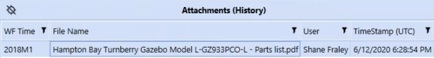 The Attachment History pane lists any attachments that are part of the task’s history.